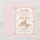 Saddle up for a sweet celebration! This gingham cowgirl baby shower invite features western flair with a charming twist—easy to edit, download, and print or share digitally.