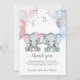 Lass deinen Gästen deine Dankbarkeit mit dieser bezaubernden Babydusche Dankeschön-Karte mit zweifarbigen und rosa grauen Babyelefanten mit Ballons und Konfetti. Zurück ist die weiche graue Aquarellfarbe. Einfach angepasst, indem Sie auf Personalisieren klicken.