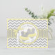 Chic, grau und weiß Zickzack, mit gelbem Kontrast und einem niedlichen Polka Dot Jumper mit gelbem Tutu und 3D-Look Bogen und Band für zwei Mädchen Baby Dusche Einladungskarte.