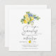 Lemon Blue Citrus Fruit Summer Baby Dusche Einladung! Dieses Design mit einer lebhaften Mischung aus zesty Zitronen, sanften blauen Akzenten und spielerischen Zitrusfloralen ist perfekt für eine erfrischende Sommerdusche