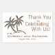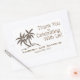 Diese einfache, aber elegante Hochzeitsnacht-Sticker mit zwei braunen Palmen mit den Vornamen von Bride & Groom und dem Hochzeitsdatum darunter. Neben den Bäumen stehen die Worte "danke für das Fest mit uns". Dieses kann für Hochzeitsfeier-Gefälligkeiten und/oder Dankeschön-Tags verwendet werden. Ideal für Hochzeiten am Meer, in tropischen Gewässern oder am Meer.