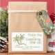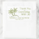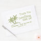 Diese einfache, aber elegante Hochzeitsnacht-Dankeschön-Aufkleber verfügt über zwei grüne Palmen mit den Vornamen der Braut & Groom und das Hochzeitsdatum darunter. Neben den Bäumen stehen die Worte "danke für das Fest mit uns". Dieses kann für Hochzeitsfeier-Gefälligkeiten und/oder Dankeschön-Tags verwendet werden. Ideal für Hochzeiten am Meer, in tropischen Gewässern oder am Meer.