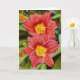 Original-Kunstwerk mit meinem Originalfoto von zwei Lily-Blume, die in einem Garten blühen und wie Zwillinge aussehen, während sie in Rot und Gelb zusammenblühen. Das Bild mit einer impressionistischen Maltechnik für ein künstlerisches Aussehen. Die Karte ist innen leer, damit Sie Ihre persönlichen Briefe und Notizen schreiben können.
