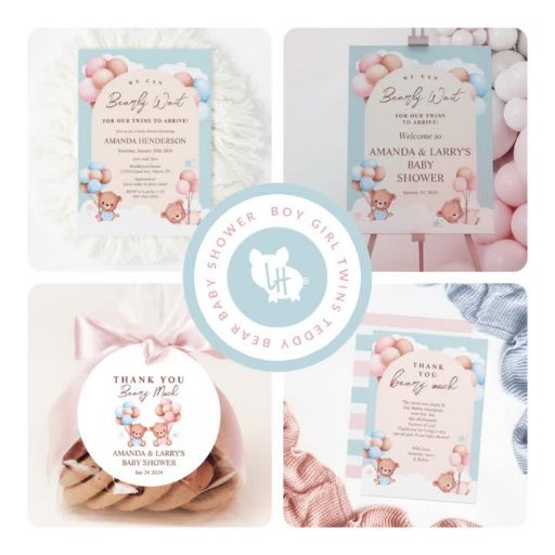 Boy Girl Twins Teddy Bear Baby ShowerDesignt von Amanda Cudnik