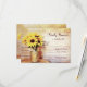 Die Hochzeitskarten sind perfekt für Hochzeitsfeiern im Landhausstil mit Sonnenblumen in ihren blumengeschmückten Hochzeitsarrangements. Die Maurerkirsche liegt vor einem rustikalen Holzboden. Es hat auch ein rustikales Holzherz an der Vorderseite des Maurerkirsches.