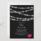 Mehrfache Stränge von Twinkle beleuchtet den diesen Akzent Hennen, die Party Einladung auf einem festen schwarzen Hintergrund mit einem Kuss verzierte, es Spaß ausmachen und kokett und perfekt während eines Mädchen-Abends, um die Braut zu feiern.