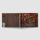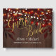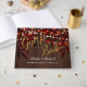 Elegantes Goldkalligraphie-Gästebuch mit rustikalen Tinkellichtern, Maurerkirsche mit weißen Blume (auf der Rückseite) und rostbraunen Herbstblättern auf dunkelbraunem Holzhintergrund. Ideal für den Herbstfall in der Nacht | elegantes rustikales Land | Hochzeit im Garten im Freien.