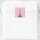 Ein eleganter Eiffelturm mit bunten Lichtern schmückt diesen rosa Aufkleber.