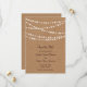 Mehrere Stränge von blinkenden Lichtern lassen diese Einladung glänzen. Es ist ideal für die Ferien- oder Winterhochzeit, die mit Tanzlichter in der Dekoration, die Sommer- oder Scheunenhochzeit, die Bäume hat oder ein Veranstaltungsort mit bunten Lichtern beleuchtet, oder jede funkelnd Angelegenheit. Es ist Teil der vollen Hochzeitslinie Twinkle Lights und in verschiedenen Farben erhältlich. Es wird auf dem Grundpapier gezeigt, aber ich empfehle das Gewicht und die Textur des Leinenpapiers für ein rustikaleres Gefühl.