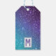 Unser TWINKLE-Design zeichnet sich durch ein lila Aquarellmonogramm, moderne Schrifttyp, aquamarinen und lila Schnee- und Sternenhintergrund aus. Verändern Sie die Stimmung, um Ihre Geschenkbedürfnisse Anzug.
