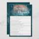 Niedliche "Twinkle Twinkle Little Star" Gender-Neutral-Babydusche oder zeigen "Kinderzimmer Rhymes Quiz" Party-Spiel bietet eine verträumte handbemalte Aquarellwolke in khaki Kupferbraun und aquamarin Grün mit schieferblauen Sternen auf einem dunklen aquamarinen Hintergrund. Das bezaubernde Thema ist das moderne, handgeschriebene Zitat-Typografie-Skript-Overlay, das mit skurrilen Glitzern auf reichhaltigem Samt besticht. Für andere Farben oder passende Produkte, besuchen Sie bitte den JustFharryn Zazzle Store, oder kontaktieren Sie den Designer, c/o Fharryn@yahoo.com Alle Rechte vorbehalten. #zazzlemade