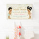 Twinkle Twinkle Little Star Banner mit Baby und Mädchen. Passen Sie den Hintergrund des Banners auf eine beliebige Farbe an, und Sie können ein Babybild löschen, wenn Sie nicht beide Geschlechter benötigen. Verwendung für Gender-Enthüllungen, Babydusche, Geburtstag oder Ankündigung.
