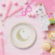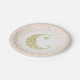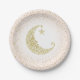 Twinkle, Twinkle, Little Paper Plate. Ein himmlischer Mann auf dem Mond sieht einen kleinen Stern an. Winziger goldener Hintergrund. Keine echte Folie. Andere Versionen verfügbar und passende Einladungen, bitte Karo mein Geschäft.