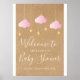 Ideal, um Freunde und Familie zu einer speziellen Dusche für Mädchen, Sprinkle oder Paare zu empfangen. Dieses hübsche Begrüßungsschild mit niedlichen rosa Wolken und goldenen Sternen an Strings auf einem rustikalen Kraftboho-Hintergrund ist perfekt für alle kleinen Mädchen, die unterwegs sind. Entwickelt von Thisisnotme©