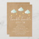 Diese geschlechtsneutrale Babydusche lädt mit niedlichen, minzgrünen Wolken und goldenen Sternen an Strings auf rustikalem Kraftboho-Hintergrund zu allen kleinen Gästen ein, die unterwegs sind. Fügen Sie Ihre Feierlichkeiten Details in weiß, um die perfekte Einladung zu schaffen.