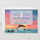 Die Geburtstagsfeier eines Nautischen Mädchens oder Jungen mit einem niedlichen Delfinpod, der unter einem zauberhaften Sternenhimmel im Ozean schwimmt und zum Feiern des Geburtstags Ihres kleinen Sterns aus Freude springen lässt. In der Caption steht "Twinkle Twinkle Little Star", gefolgt von den Details zu den Geburtstagsfeiern Ihres kleinen Kindes. Sie können eine blaue oder rosa Hintergrundfarbe wählen. Umkehrseite ist ein zauberhafter pastellfarbener Wasserfarbenverlauf mit funkelnden Stern-Wirbel. Sie können die Details (z. B. Name, Alter, Datum) einfach personalisieren, indem Sie auf "Personalisieren" klicken und dann Ihren gewünschten Text eingeben, um den Beispieltext in den angegebenen Feldern zu ersetzen. Ideal für Wassersport, tropische Party, Strand und Ozean.