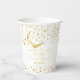 Twinkle winzige kleine Stern Baby Dusche Gold und Glitzer Vorlage Party Becher personalisiert Babydusche Geschirr. Einfache goldhalbmondfarbene Goldsterne und Sprinklen auf weißem Hintergrund, goldene Schriftart-Baby-Duschtassen