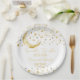 Twinkle winzige kleine Stern Baby Dusche Gold und Glitzer Vorlage Party Teller personalisiert Babydusche Geschirr. Einfache goldhalbmondfarbene Goldsterne und Sprinklen auf weißem Hintergrund, goldene Schriftart Babydusche Teller