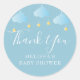 Twinkle winzige kleine Stern Baby Dusche blau danke, klassischer Rundaufkleber. Entworfen, um mit unserer Twinkle twinkle Baby Dusche Kollektion zu koordinieren. Diese Babyduschkleber mit niedlichen blauen Wolken und goldenen Sternen auf den Saiten auf pastellblauem Hintergrund eignen sich perfekt zum Abdichten von Umschlägen und Babyduschfavoriten. Fügen Sie Ihre Feierlichkeiten Details in weiß, um den perfekten Aufkleber zu erstellen.