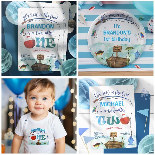 Zehn 1. Geburtstag Einladung, Angelgedanken. Gone Fischen ersten Geburtstag lädt zum Angeln themed Geburtstagsparty. Little Fisherman Einladung zum ersten Geburtstag für Jungen