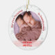 Trendy, elegant und niedlich personalisierte First Christmas Twins Baby Girls Ornament für Paten-Eltern mit einem weißen Rahmen mit Schneeflocken und Sternen. Die Vorderseite hat eine runde Öffnung für ein individuelles Foto von Zwillingsmädchen und Großeltern sowie zwei rosa Verbote, auf denen die Namen der Neugeborenen in einem modernen Drehbuch-Schriftart / Typografie erscheinen, und der andere benutzerdefinierte Text "Unser erstes Weihnachten als Großeltern" Der Rücken hat ein Bild von Zwillingsbabys, das Sie mit einem Foto behalten oder ersetzen können, und der anpassbare Text "Erste Weihnacht 2202220222222222222222222022000002000002202200200000000000000000000000000000 ein rosa Band.