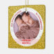Trendy, elegant und niedlich personalisierte First Christmas Twins Baby Girls Ornament für Paten-Eltern mit einem weißen Rahmen mit Schneeflocken und Sternen auf einem (Imitate) goldenen Glitzer Hintergrund. Die Vorderseite hat eine runde Öffnung für ein individuelles Foto von Zwillingsmädchen und Großeltern sowie zwei rosa Verbote, auf denen die Namen der Neugeborenen in einem modernen Drehbuch-Schriftart / Typografie erscheinen, und der andere benutzerdefinierte Text "Unser erstes Weihnachten als Großeltern" Der Rücken hat ein Bild von Zwillingsbabys, das Sie mit einem Foto behalten oder ersetzen können, und der anpassbare Text "Erste Weihnacht 2202220222222222222222222022000002000002202200200000000000000000000000000000 ein rosa Band.