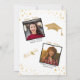 Zehn doppelte Graduation Party Einladung. Doppel-Abschluss-Doppel-Abschlussfeier. Porträt von Zwillingsfrauen mit hellroten Haaren in schwarzen Kleider mit blauen Abschluss-Roben und Graduierkappen mit Goldballons für die Klasse von 2025. Beide Zwillinge auf der Kartenrückseite mit ihren Fotos, Namen, Schulen und Abschlüssen.