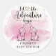 Lass das Abenteuer beginnen whimsical Zwillinge Babydusche Aufkleber, mit niedlichen whimsical Elefanten überlagert auf einer Aquarellwäsche mit winzigen Sternen.