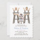 Die erste Geburtstagsfeier schluckt Kuchen Einladung für Zwillinge Futures zwei Babys in hohen Stühlen mit bunten, extravaganten Schmetterkuchen. Für Haare, Hautfarbe und Geschlecht stehen verschiedene Optionen zur Verfügung.