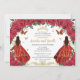 Twins Quinceañera Princesses Rote Rosen Floral Gol Einladung