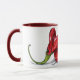 Illustration von zwei roten, heißen, sich in einer Umarmung verdrehten Kilien. Ein großartiges romantisches Geschenk für diejenigen in der Liebe, ein Ehemann, eine Ehefrau, eine Freundin, ein Freund, Liebhaber oder ein lustiges Geschenk für diejenigen, die Liebe Romantik oder würzige Speisen und Gemüse! Auch ein Plakat, Karte, Briefmarke, Aufkleber, Beutel, T - Shirt Schürze und Tasse.