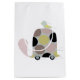Ein kleiner Vogel fährt mit einem sehr schnellen Schildkrötenauto.