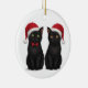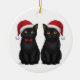 Two Black Kittens Santa Hat Christmas Keramik Ornament