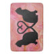 An all black silhouette of two cats.  Their identically curled tails come together to form a heart.  This all too-cute design is perfect for Valentine's Day, expressions of love, or a sweet romance with the pink marble swirl background.