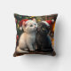 Two adorable, cute kitten with lovely faces - one white, one black, wearing Santa hats cuddle under the Christmas tree in the living room. Wonderful an cute motif for the season - fits for everyone! Beautiful home accent for cat lovers, pretty small gift idea!
