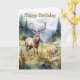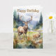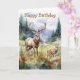Two deer in mountain landscape with trees and flowers. Suitable for a birthday for anyone