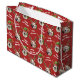 This festive gift bag is perfect for all the dog lovers in your life! Featuring adorable photos of dogs wearing reindeer antlers and elf hats against a red background, this gift wrap is sure to bring a smile to everyone's face. The photos may also be changed to photos of your own pups or those of your recipient! Editable text says Merry Pup-mas and Happy Paw-lidays. See full collection for additional size options.