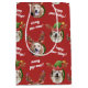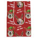 This festive gift bag is perfect for all the dog lovers in your life! Featuring adorable photos of dogs wearing reindeer antlers and elf hats against a red background, this gift wrap is sure to bring a smile to everyone's face. The photos may also be changed to photos of your own pups or those of your recipient! Editable text says Merry Pup-mas and Happy Paw-lidays. See full collection for large size option.