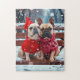 Celebrate the cozy charm of winter with this delightful jigsaw puzzle featuring two French Bulldogs sitting together on a park bench, dressed in knitted winter outfits. The whimsical scene combines the cuteness of a beloved dog breed with the magical atmosphere of a snowy day. Rendered in a cheerful and heartwarming style, the artwork captures humor, companionship, and seasonal coziness all at once. Perfect for puzzle enthusiasts, dog lovers, and anyone who enjoys festive imagery, this puzzle offers both a fun challenge and a decorative piece once completed. More than just a pastime, it’s a joyful artwork that makes an ideal gift for Christmas, winter birthdays, or cozy evenings at home.