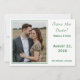 Design features the photo you provide as main design displayed against a white background and framed by an elegant, forest-green colored border. To the right of photo, your text containing heading, names and city & state of wedding are displayed in a matching forest-green font.