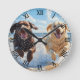Two Labrador Retrievers on Beach Runde Wanduhr