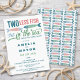 Two Less Fish in the Sea Couples Bridal Shower Invitation. Celebrate the happy couple with this charming "Two Less Fish in the Sea" couples wedding shower invitation. The playful design features two adorable fish, one salmon pink and one teal ands green, swimming amidst wavy blue lines, evoking a serene and joyful nautical ocean theme. This invitation is perfect for a beach or seaside wedding celebration, setting a delightful tone for your event. Ensure your guests have all the details with space for honoree names, date, time, location, and RSVP information. Let this unique modern invitation be the start of a wonderful journey for the soon-to-be newlyweds.