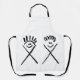 A fun and minimal design featuring two stylized friends made of simple black lines.