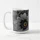 A pair of delicate daisies take centre stage in this striking selective‑colour photograph. The petals and surrounding foliage are rendered in smooth grayscale, creating a calm, monochrome backdrop. At the heart of each bloom, vivid yellow‑orange centres burst with warmth and detail, forming a dramatic contrast that immediately draws the eye. Fine water droplets rest on the petals and leaves, adding texture and a sense of freshness. The combination of soft tones and vibrant colour accents gives the artwork a modern, elegant feel that suits home décor, nature lovers, and contemporary art collections.