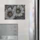 A pair of delicate daisies take centre stage in this striking selective‑colour photograph. The petals and surrounding foliage are rendered in smooth grayscale, creating a calm, monochrome backdrop. At the heart of each bloom, vivid yellow‑orange centres burst with warmth and detail, forming a dramatic contrast that immediately draws the eye. Fine water droplets rest on the petals and leaves, adding texture and a sense of freshness. The combination of soft tones and vibrant colour accents gives the artwork a modern, elegant feel that suits home décor, nature lovers, and contemporary art collections.