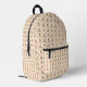 Two-panel image of a backpack. The front shows a beige background with a small floral pattern and a black zipper pocket. The back displays black padded straps and a side pocket.