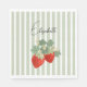 Two Red Strawberries Stripes & Flowers | Fruit Serviette