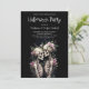 Two Romantic Gothic Human Skeletons Embracing Surrounded By Lush Floral Arrangements Halloween Party Invitation Cards.