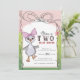 Waddle and waggle into year two! This "Two Silly Goose" 2nd birthday invitation features our original, hand-painted watercolor gosling with a charming pink polka dot bow. Set against a fresh green garden and pink watercolor wash, this design captures the trendy Coquette and Grandmillennial aesthetic perfectly.