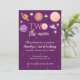 "Two the Moon and beyond! Elevate your little girl’s second birthday with our enchanting space-themed party invitation. Picture a celestial sky in mesmerizing shades of pink and purple, complete with the Moon, planets, and an adorable rocket ship soaring towards the stars. Make it a personalized cosmic experience by adding your own details, and get ready for an unforgettable celebration!"